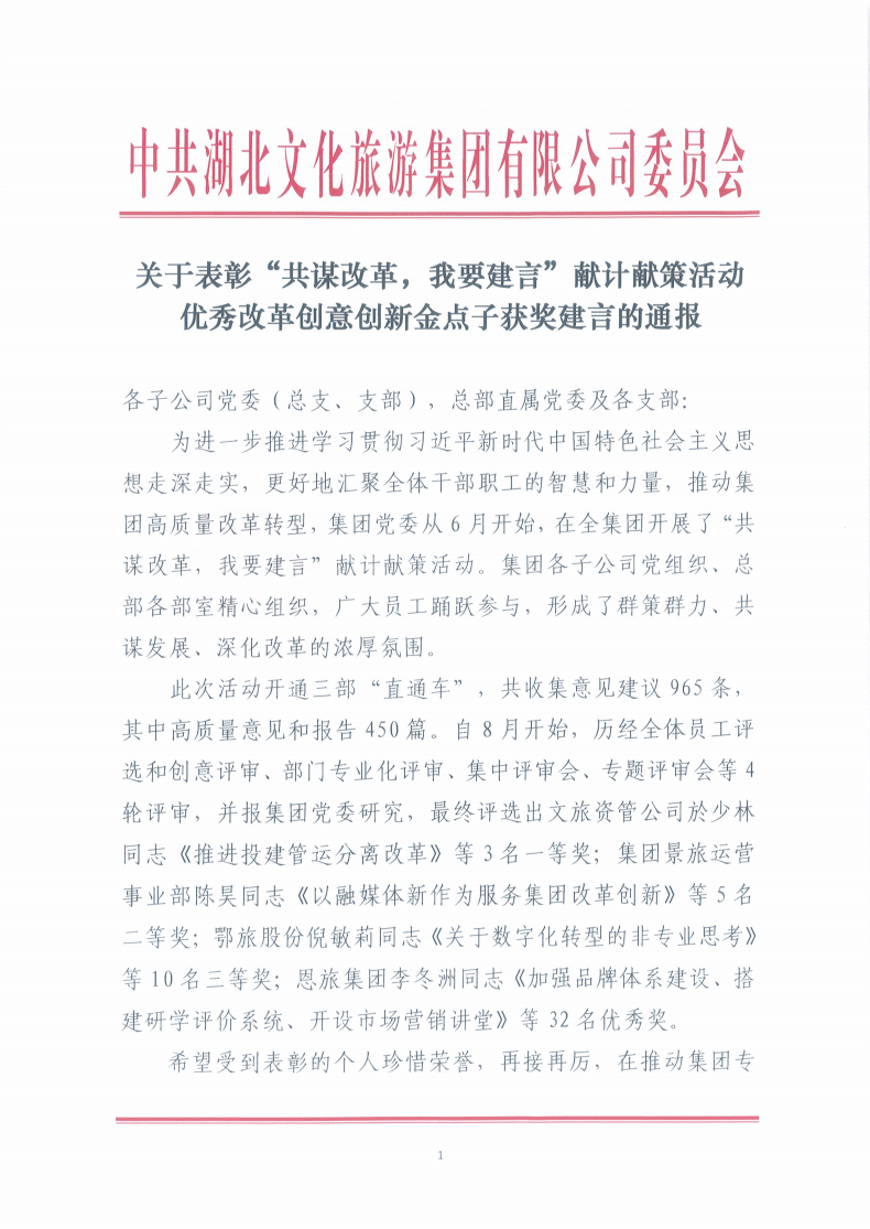 數(shù)旅集團(tuán)獲“共謀改革、我要建言”優(yōu)秀獎(jiǎng)