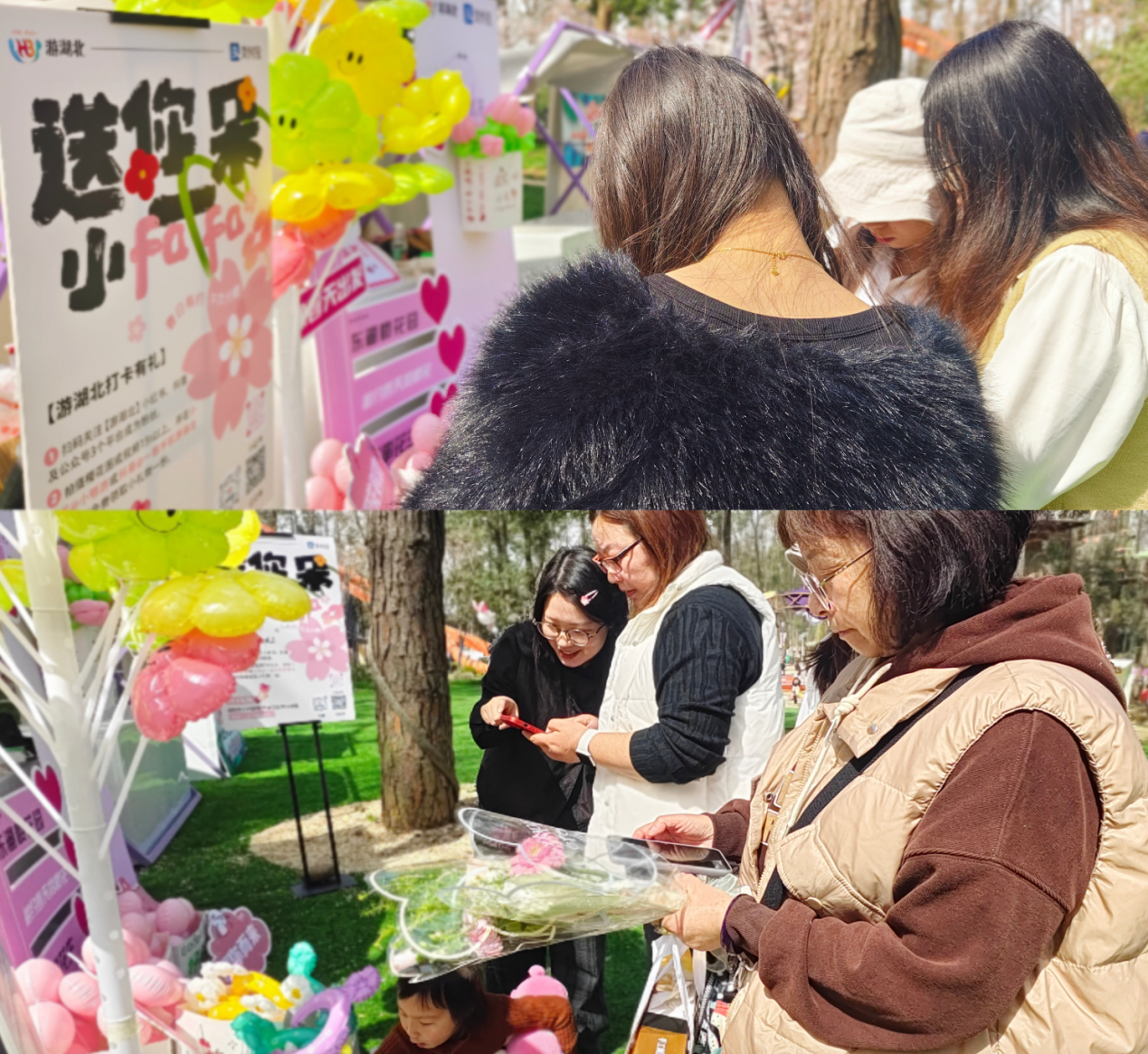 活動期間,游湖北打卡點處排隊參與的人絡繹不絕。打卡點處精心設計了氣球花打卡墻、“送你一朵小紅花”拍照區(qū)及氛圍手持拍照板等,現(xiàn)場還準備了多重春日好禮。營造了好玩、好拍的體驗氛圍,展現(xiàn)了游湖北平臺活動的趣味性、互動性。