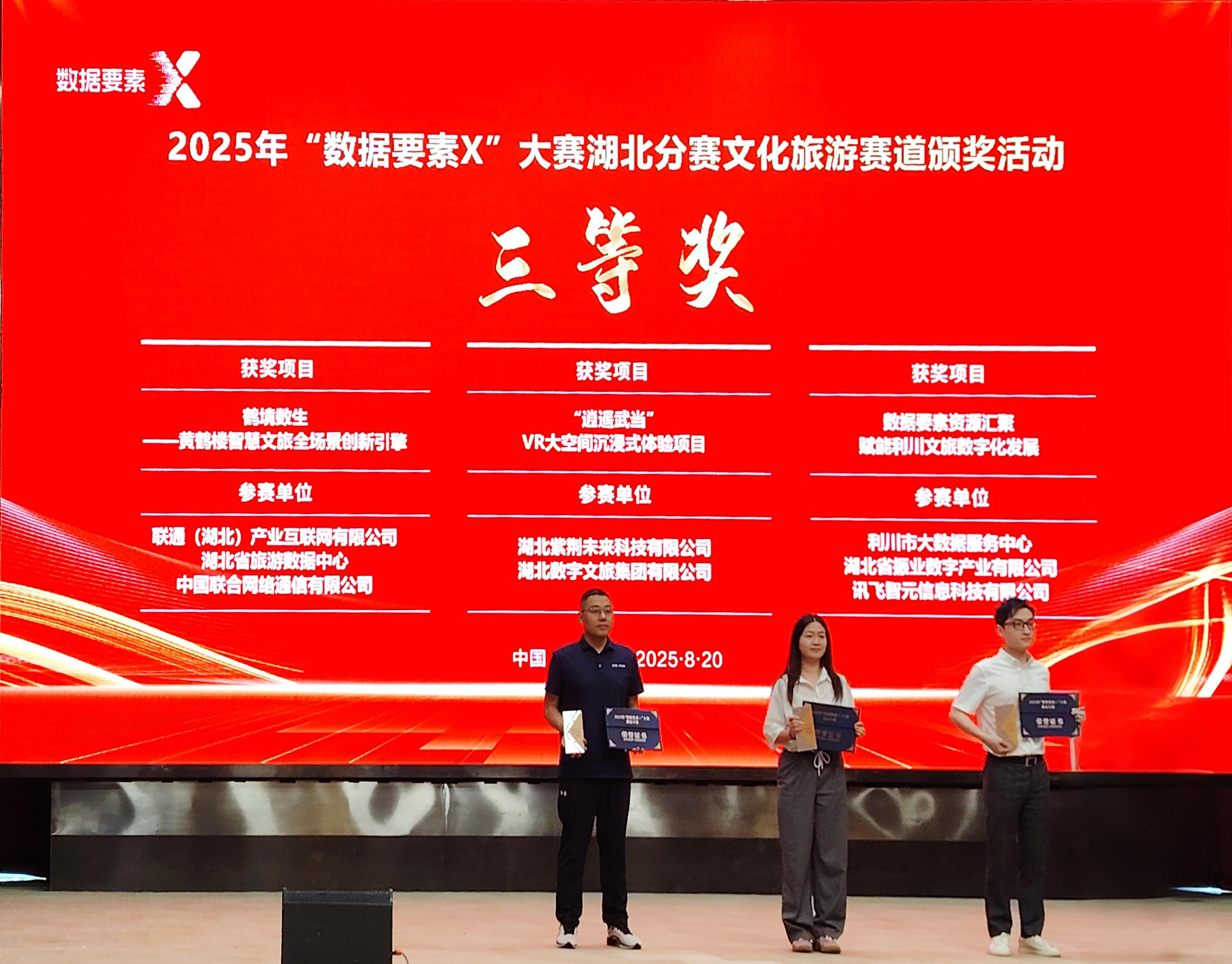 8月20日,由湖北省數(shù)據(jù)局、湖北省文化和旅游廳、十堰市人民政府主辦的2025年“數(shù)據(jù)要素×”大賽湖北分賽文化旅游賽道決賽活動在十堰成功舉行。數(shù)旅集團(tuán)參賽項(xiàng)目均獲得獎項(xiàng),湖北文旅全域智慧旅游綜合服務(wù)平臺獲二等獎(賽道第2名)、“逍遙武當(dāng)”VR大空間沉浸式體驗(yàn)項(xiàng)目獲三等獎(賽道第4名)、無人機(jī)航拍服務(wù)平臺和智景游景區(qū)綜合運(yùn)營管理平臺獲優(yōu)秀獎。在參賽數(shù)量、入圍率及獎項(xiàng)層級上均實(shí)現(xiàn)顯著突破,充分彰顯了公司在數(shù)據(jù)要素領(lǐng)域的技術(shù)積累與創(chuàng)新實(shí)力。