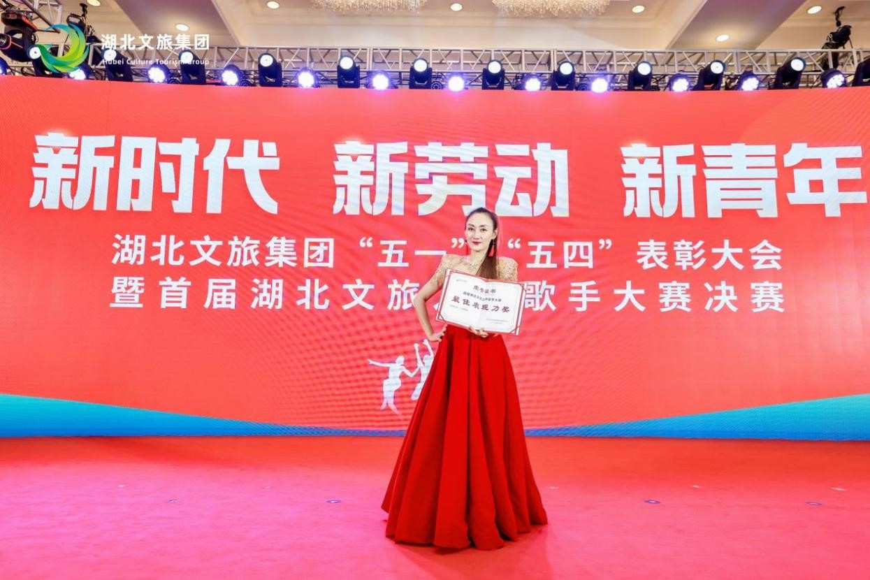 5月9日,湖北文旅集團(tuán)“五一”“五四”表彰大會(huì)暨“新時(shí)代 新勞動(dòng) 新青年”首屆湖北文旅之聲歌手大賽決賽在洪山賓館舉行,數(shù)旅集團(tuán)2名共青團(tuán)、工會(huì)表彰受獎(jiǎng)?wù)叩巧项I(lǐng)獎(jiǎng)臺(tái),歌手比賽中獲最佳表現(xiàn)力獎(jiǎng)。